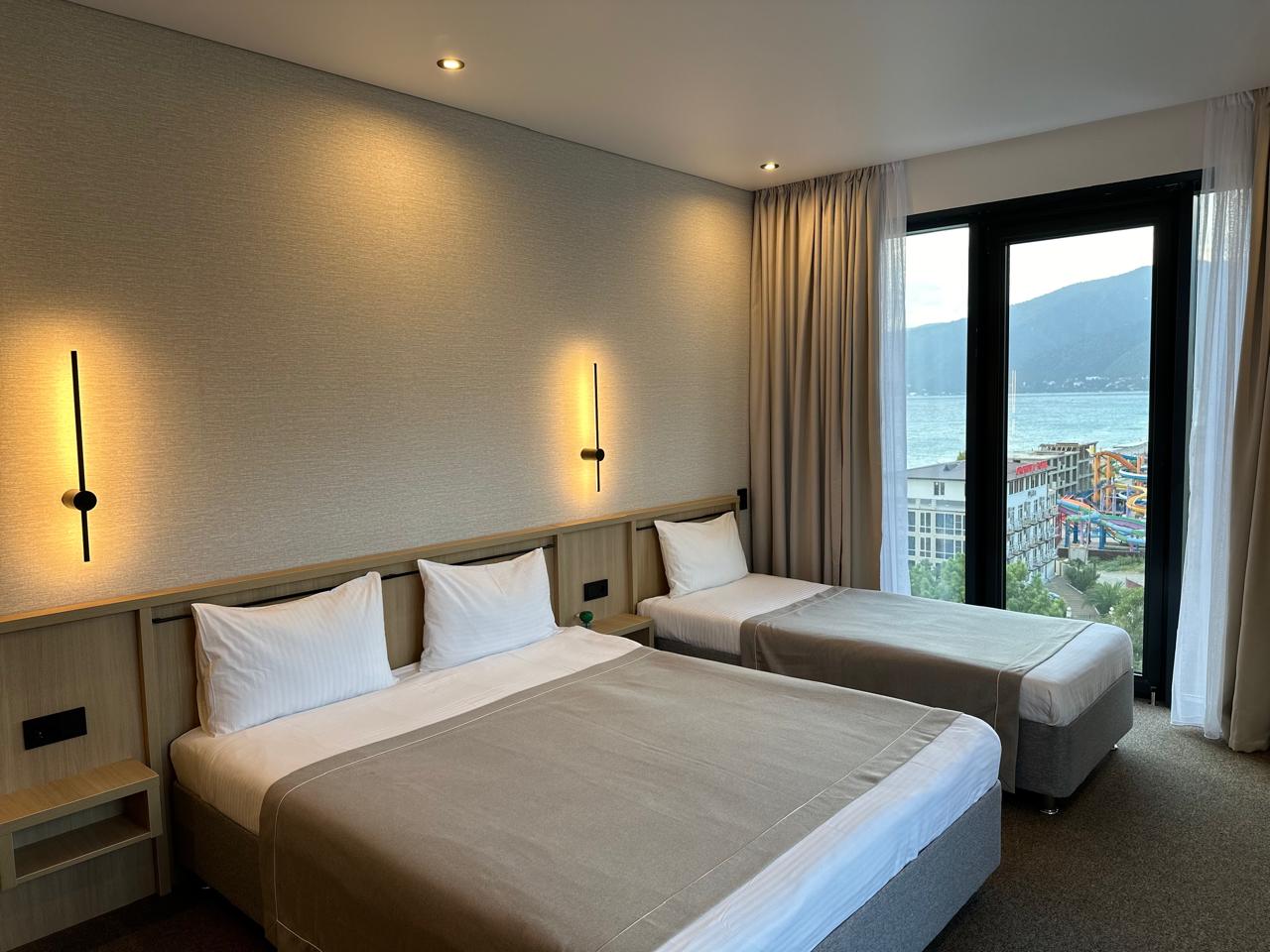 Новый, современный отель обладает всем необходимым для комфортного отдыха гостей. Более двухсот гостиничных номеров различных категорий от стандарта до люкса. В здании отеля большой ресторан, где будет проходить 3-разовое питание по системе шведский стол. К 01.09.2024 г планируется открытие СПА-центра в отдельно стоящем 2х этажном здании.