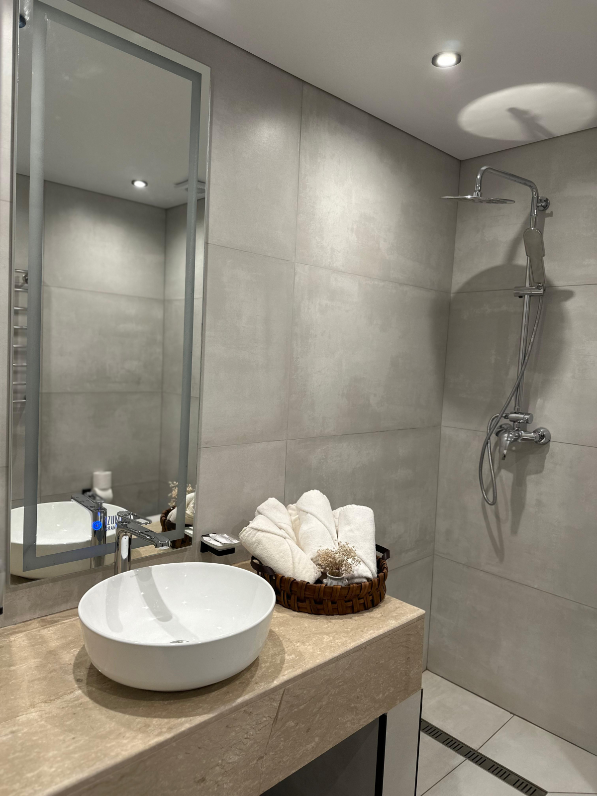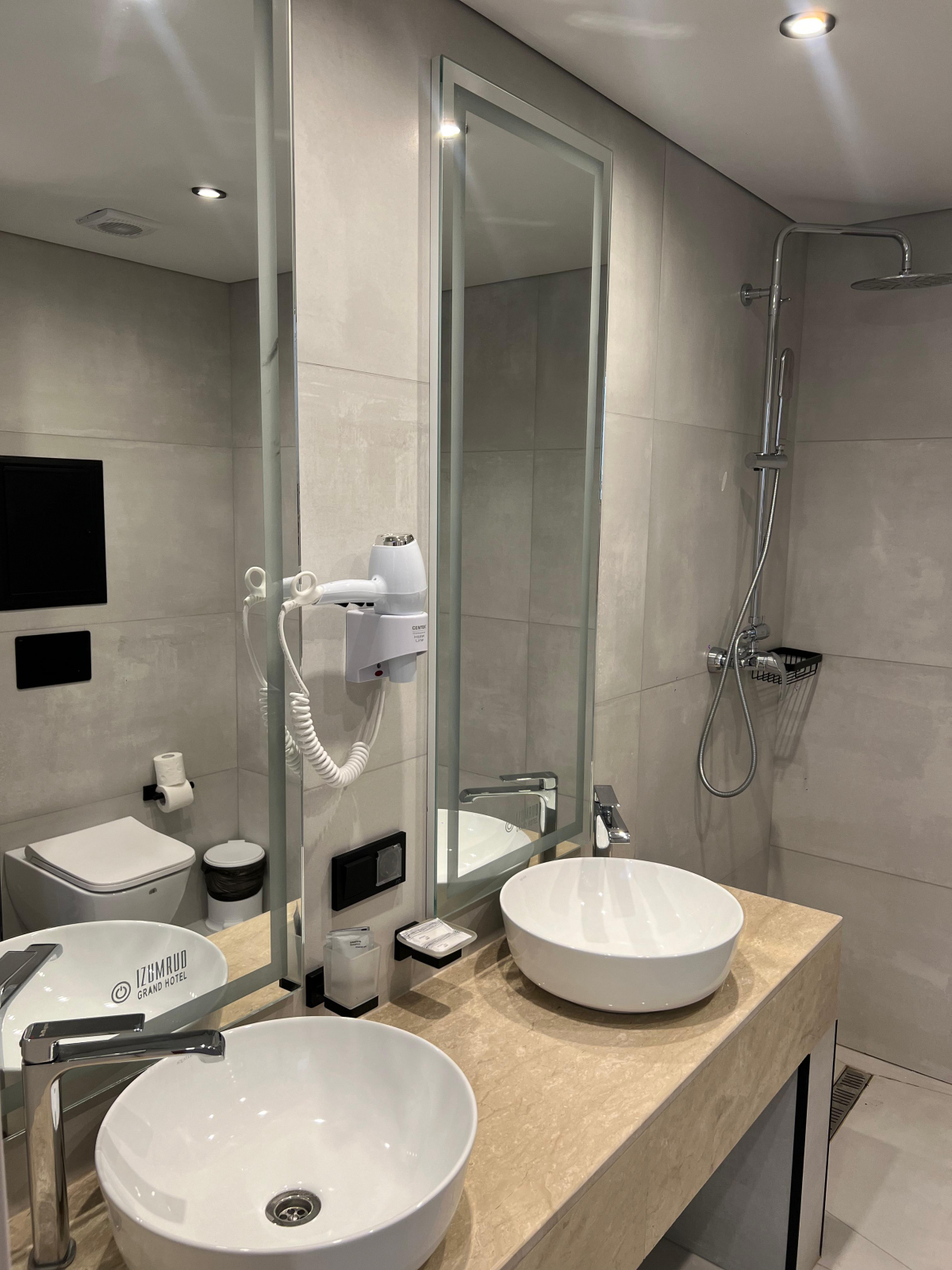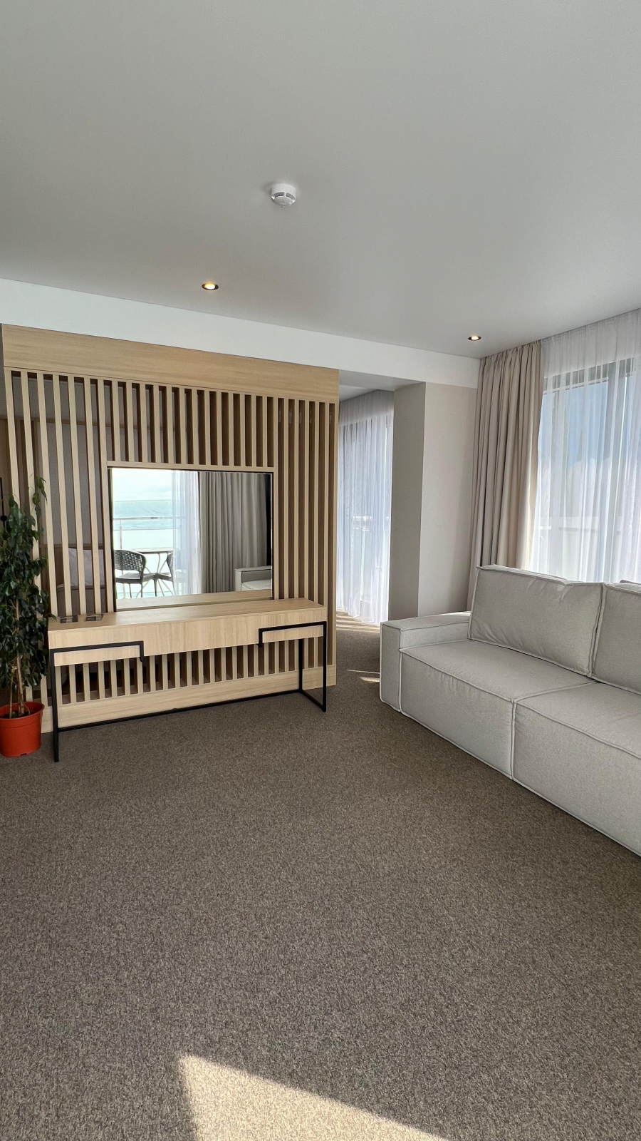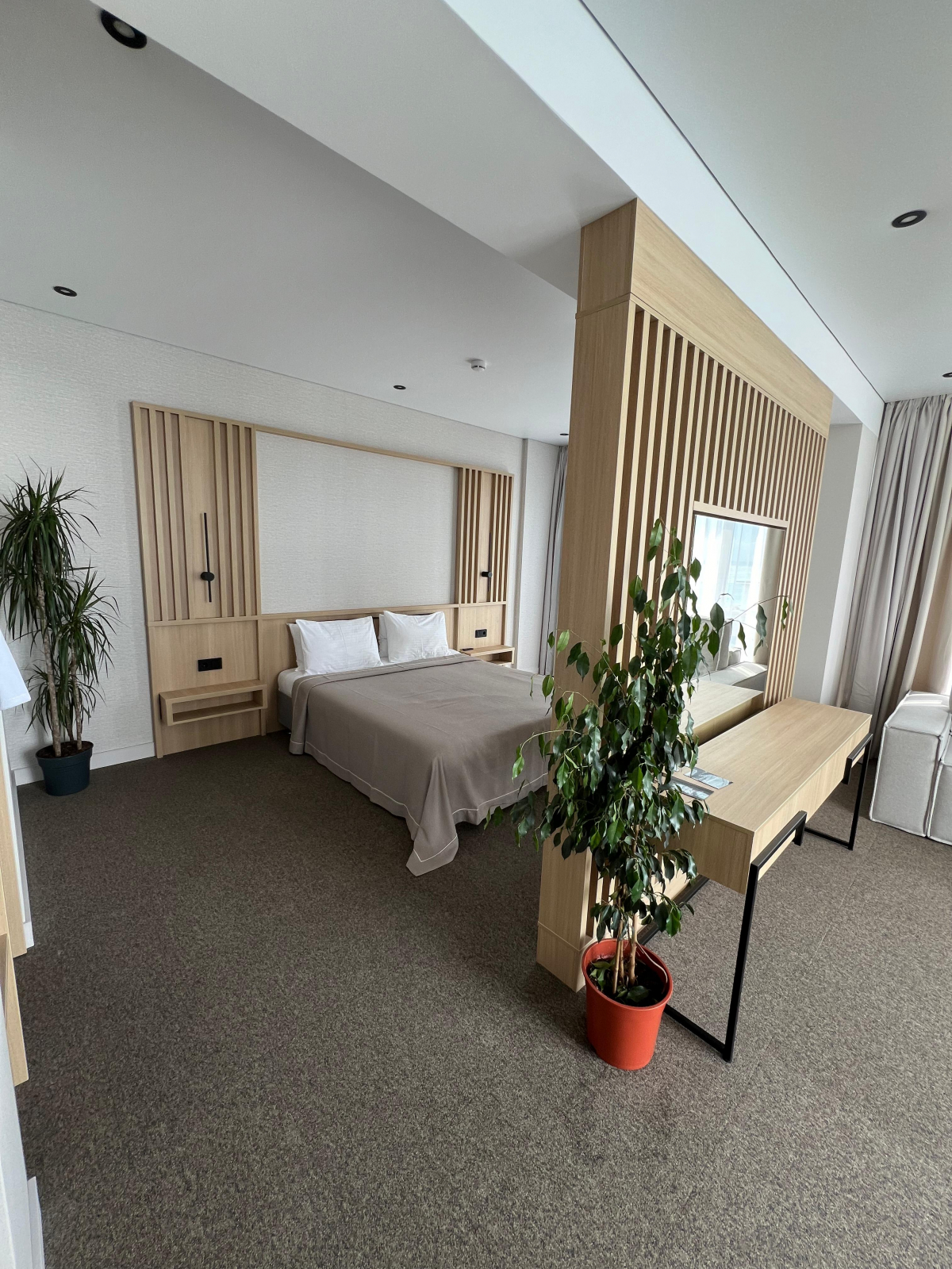 Площадь номера - 18 кв.м. 2 осн. места. 1 доп. место. Балкон. Мебель: вешалка, диван раскладной, зеркало, кровать двуспальная, прикроватные тумбочки, пуфик, стол, шкаф. Оборудование: кондиционер, телевизор, холодильник, чайная станция. Санузел: с душем, тапочки, туалетные принадлежности, фен, халат. Сервис: Wi-Fi бесплатно, смена полотенец, смена постельного белья, уборка номера.